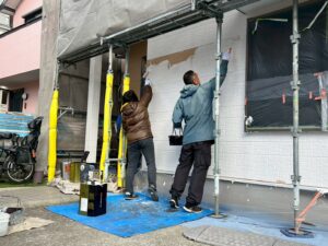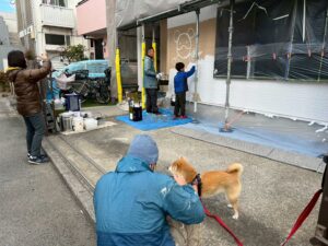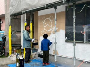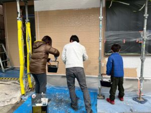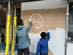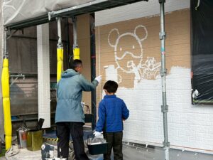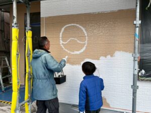 塗装体験をして頂いた日は雪はちらつくほど!大変寒い日でしたが、お子様がとても元気よく張り切ってくださり、寒さに負けずに広範囲を塗装してくださいました(#^^#)ご家族で絵を描いたり、職人も大変嬉しそうで終始笑顔が絶えず、とても盛り上がり素敵な時間となりました°˖✧˖°